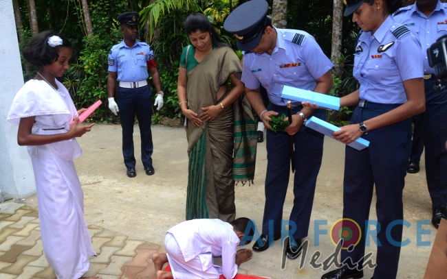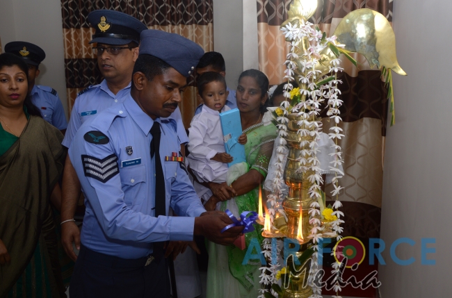 The house warming ceremony was held under the participation of the Commanding Officer of SLAF Station Sigiriya, Wg Cdr DCDB Alwis and President of the Seva Vanitha SLAF Station Sigiriya, Mrs. Krishani Alwis at Pujapitiya.
