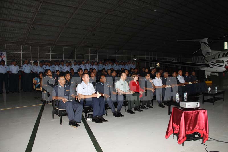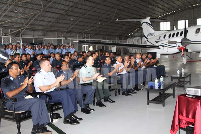Providing a fitting venue for the event, the handing over of the equipment took place in the main hanger of the No.8 Light Transport Aircraft Squadron where two Beech King Air aircraft equipped with the Real Time Data Link flanked by the distinguished gathering of invitees.