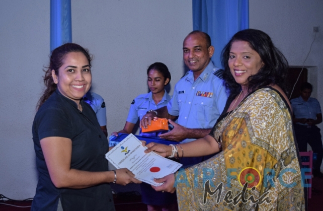 19 participants including daughters of serving and retired service personnel and 16 young airwomen who passed out received certificates. Instructors were also felicitated by Chairperson SVU with certificates and gifts. Air Vice Marshal Kapila Wanigasooriya who is currently overlooking duties of the Director Welfare and the Commanding Officer of the Trade Training School with other officers participated for the event.