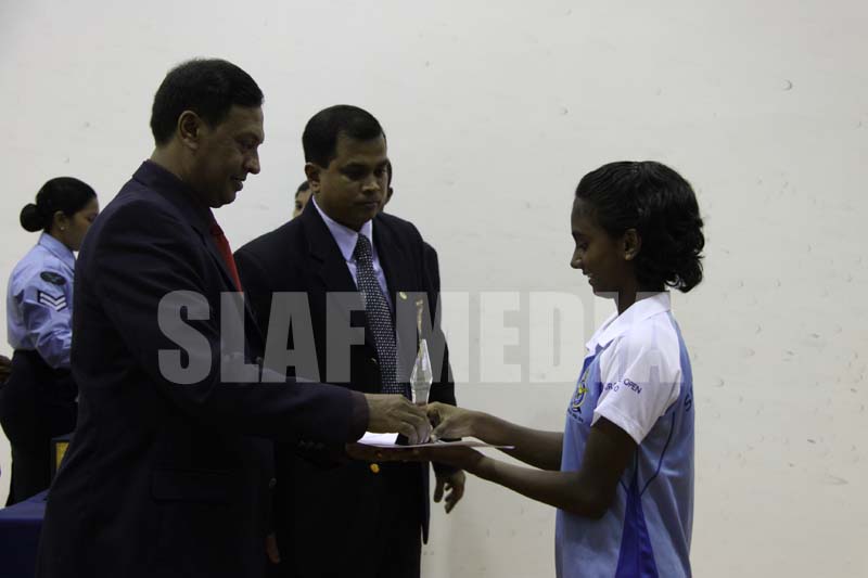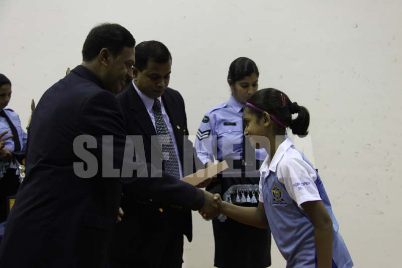 The Chief of Defence Staff and the Commander of the Air Force, Air Chief Marshal Roshan Goonetileke and Mrs. Nelun Goonetileke graced the occasion as the Chief Guest. While the Deputy Chief of Staff Air Vice Marshal Harsha Abeywickrama, Director Dental Service and the SLAF Squash Chairman Air Vice Marshal Asoka Amunugama, Acting Director Training Air Commodore Lal Perera, Base Commander SLAF Base Ratmalana, Air Commodore Sumangala Dias and the Chairman of Sri Lanka Squash Federation Mr. Oliver Guruge also graced the occasion.
