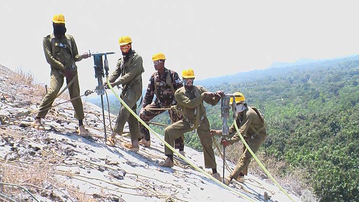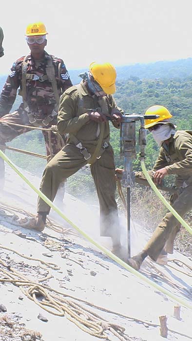 Entire operation of the project handled by SLAF personnel who are qualified in explosives handling and also operation of heavy machinery.