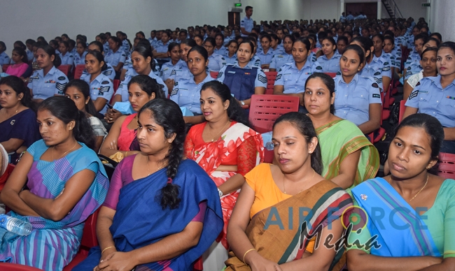 The guest lecturer of the programme was Mrs RML Jayasekara, past principal of Visakha Vidyalaya Colombo. She was able to enrich the participants with her own experiences and delivered valuable tips on being a dutiful woman, wife, mother and a servicewoman. Spouses of the Air Force Board of Management, Lady Officers, Airwomen and Ladies of SLAF Civilian Staff also gathered to experience this fruitful event.
