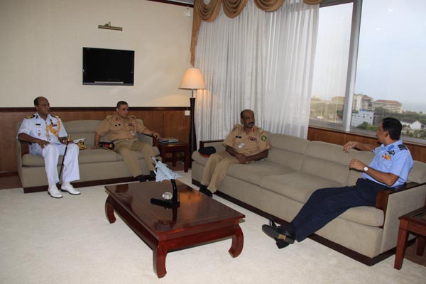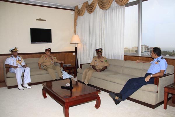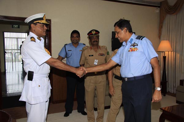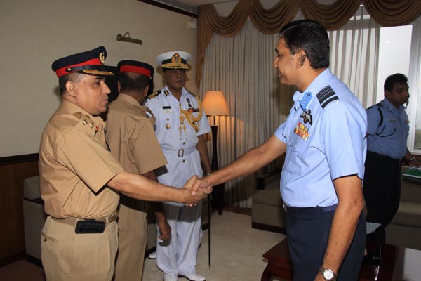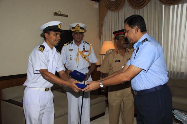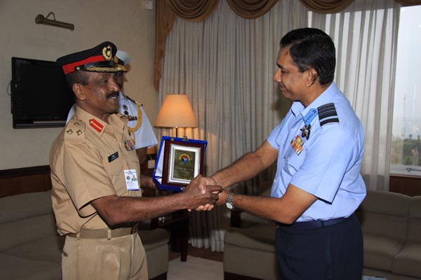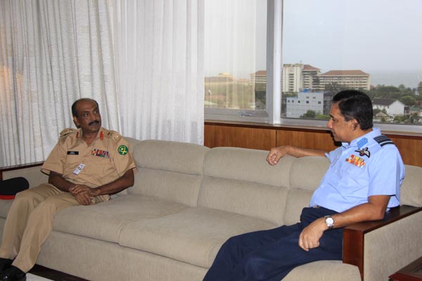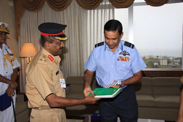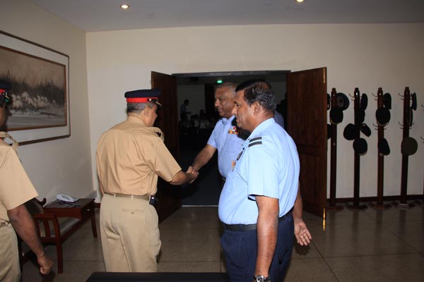 The contingent was welcomed by the Chief of Defence Staff and the Commander of the Air Force, Air Chief Marshal Roshan Goonetileke who held an informal discussion after which plaques were exchanged.