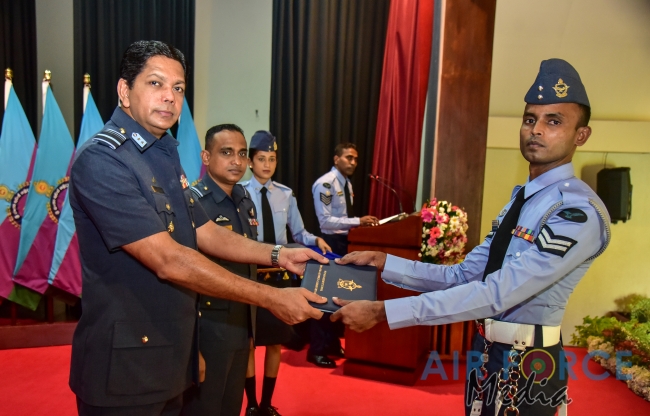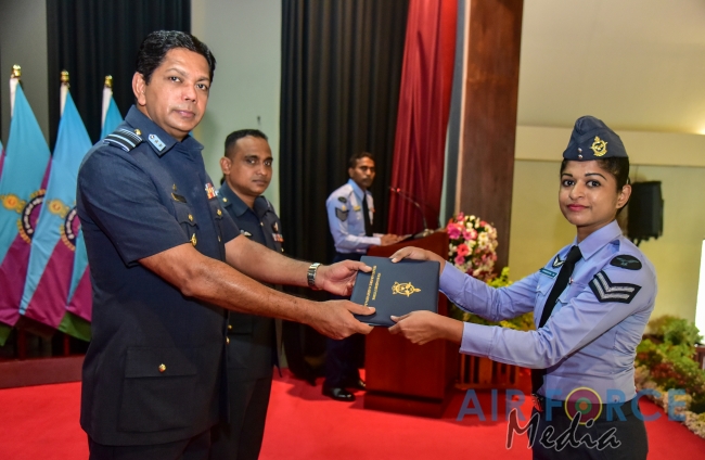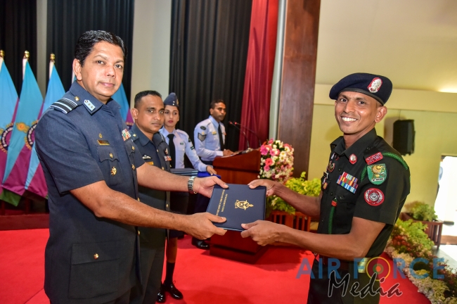 The primary objective of conducting these courses are to transfer a sound academic and managerial knowledge, while sharpening leadership qualities within the Non Commissioned Officers of the Air Force. The course was conducted based on a well-formed syllabus over a scheduled period of 14 weeks. Both courses were affiliated to the University of Rajarata and all Non Commissioned Officers who fulfilled the required criteria were awarded with a Certificate in Management. The No. 12 English Medium and No. 83 Sinhala Medium batches comprised of 53 Senior Non Commissioned Officers and 74 Junior Non Commissioned Officers. At the Ceremony 127 awardees received certificates to mark the successful completion of the courses.