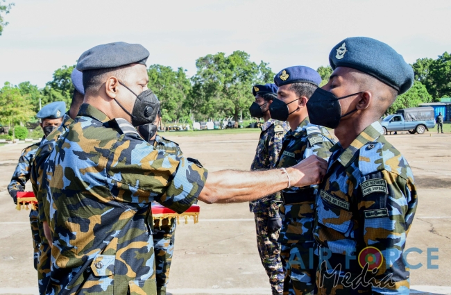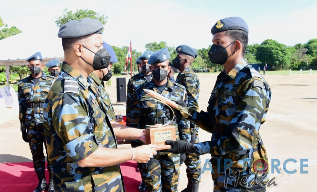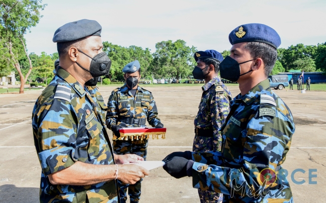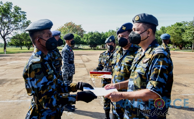 The Badges and Certificate Awarding Parade of the EOD Training School at SLAF Station Palavi for the No.3 EOD Instructor Course, No.40 Officers, No.55 Airmen, No.15 Airwomen and No.30 Naval Personnel’s EOD Basic Courses was held today (17 December 2020). The Deputy Director Aeronautical Engineering, Air Commodore RHKP Ranasinghe RSP, USP, MSc (Def Stu) in Mgt, MDS, AMITD (SL), MIM (SL), psc grace the parade as the Chief Guest.