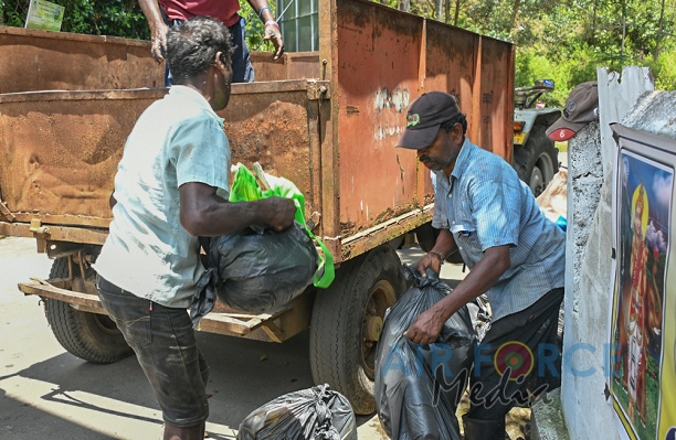 The team engaged in religious activities at the Maussakelle Saman Devalaya on the eve of the 11th before proceeding to the Peak. At dawn on the 12th of March, two SLAF teams of over 200 personnel who were at the peak started collecting waste along the paths leading down to Ratnapura and Nallathanniya. The campaign was hosted by the Commanding Officer of SLAF Combat Training School at Diyatalawa, Air Commodore PSN Fernando. Moreover, Deputy Chief of Staff Air Vice Marshal Lenard Rodrigo, Base Commander SLAF Base Katunayake Air Vice Marshal Udeni Rajapaksa, Commanding Officer SLAF Trade Training School Ekala Air Commodore Mahawattage and senior officials participated to this meritorious event. Also, with the leadership of Commanding Officer Regiment Special Forces at SLAF Station Morawewa, Wing Commander Priyadarshana Hettiarachchi, Regiment Special Force troops also joined in to make the campaign a success.