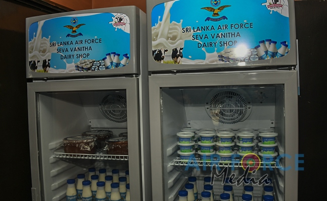 The objective of this project are to provide an opportunity for both service and civil personnel to benefit from dairy products produced by SLAF such as Curd, Yoghurt and Yoghurt drink and also to promote indigenous milk products within the country. The Chairperson of the SLAF Seva Vanitha Unit Mrs Charmini Pathirana, Members of the AFBM, Commanding Officer SLAF Station Colombo, Air Vice Marshal Janaka Amerasinghe and Mrs Sunethra Amerasinghe , Air Secretary Air Commodore VP Balasuriya, Spouses of the AFBM Members, a cross section of Officers and Other Ranks of the SLAF Station Colombo along with the Staff of the Seva Vanitha Unit participated for the event.