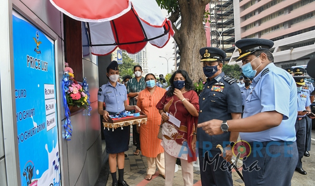 On a novel concept of the Chairperson of the SLAF Seva Vanitha Unit, Mrs Charmini Pathirana, a new Dairy Shop was declared open today (17th March 2021) at SLAF Station Colombo by the Commander of the Air Force, Air Marshal Sudarshana Pathirana.