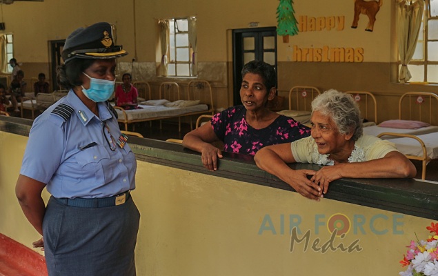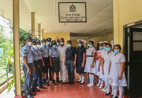 The Sri Lanka Air Force Trade Training School (TTS) Seva Vanitha Unit conducted a special donation program at Mulleriyawa Hospital Ward No 3 yesterday (24 March 2021). The inmates were served with refreshments and lunch in the ward while sanitary items and cleaning materials were donated for the usage in the ward.