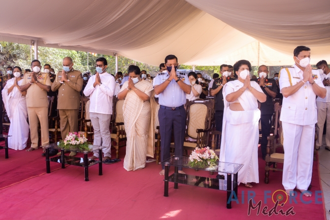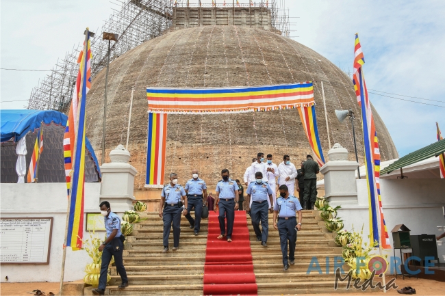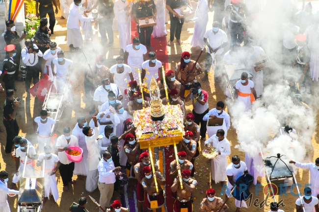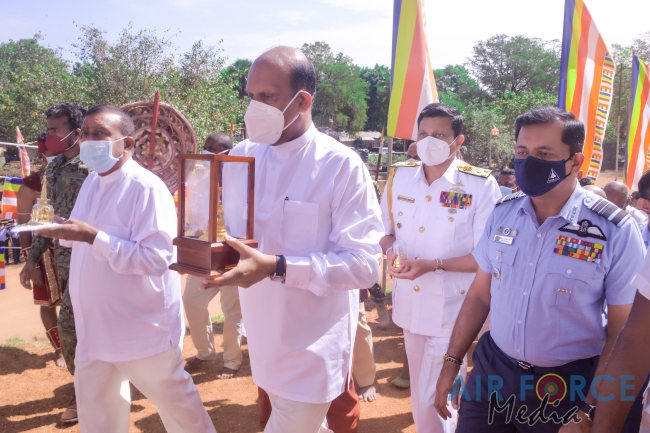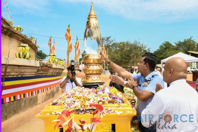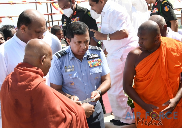 The Commander of the Air Force, Air Marshal Sudarshana Pathirana together with Mrs. Charmini Pathirana participated for yesterday's ceremony. The Secretary to the Ministry of Defence, General Kamal Gunaratne (Retd) offered a coffer containing sacred relics to Maha Sanga.