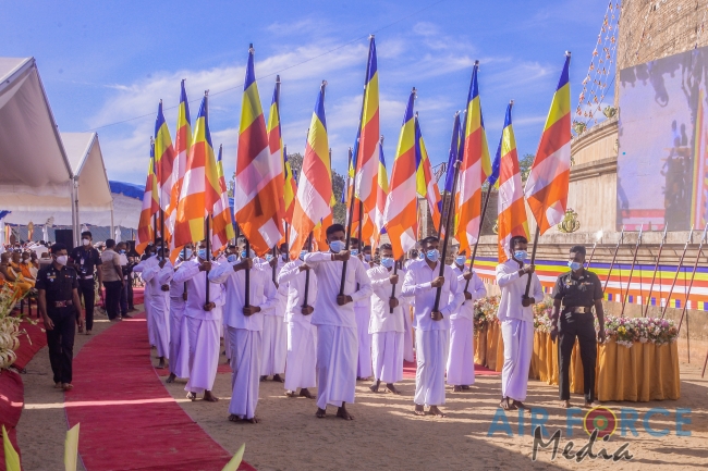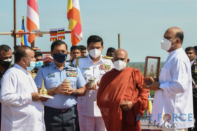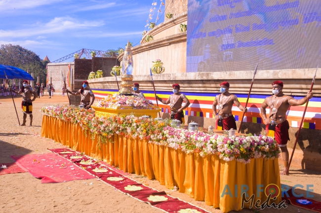 Venerable Maha Sanga including Malwathu Chapter Lekakadhikari, Most Venerable Rajakiya Panditha Dr. Pahamune Dharmakirthi Sri Sumangala Thero, Government Ministers, the North Central Province Governor, Parliamentarians, Ministry Secretaries, Commander of the Navy, Inspector General of Police, Director General of Civil Security Department, Chairman and Chief Executive Officer of the National Gem & Jewellery Authority and a large gathering of devotees and invitees were also present for the sacred event.