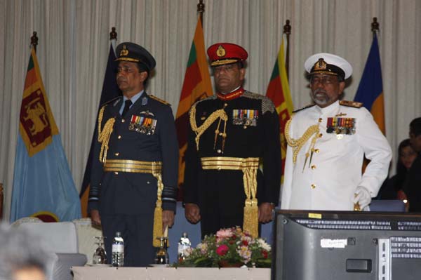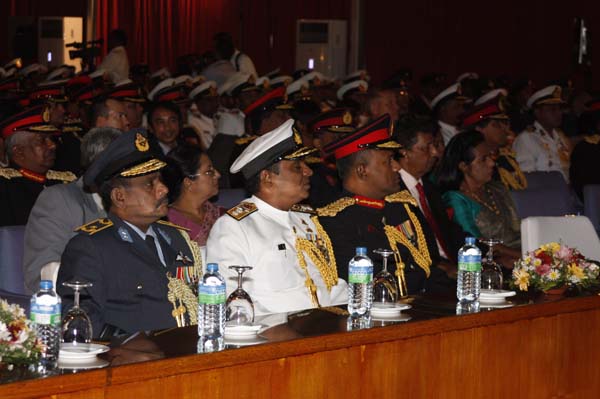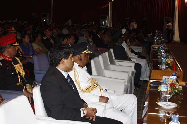 Addressing the gathering H.E. President Mahinda Rajapakse stated "Military Officers should themselves set an example to their junior ranks by showing them the correct path and Forces personnel have to comply with the country’s military, civil and criminal law. He stressed that they cannot evade the civil law of the country merely because they were military personnel.