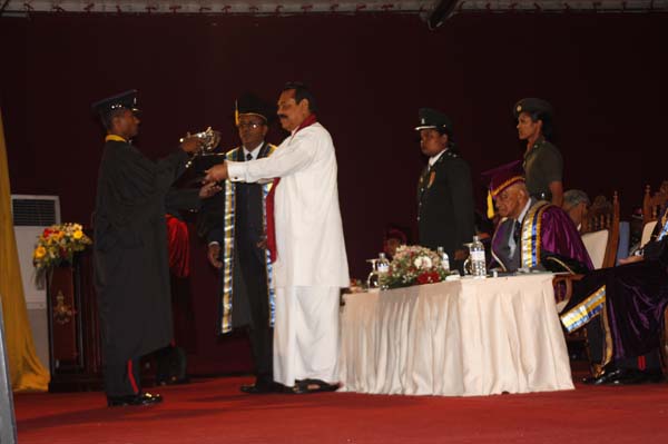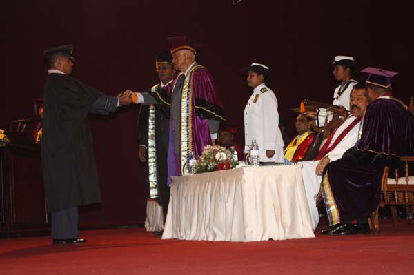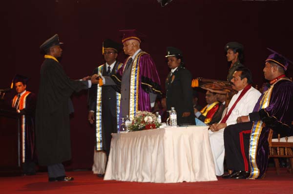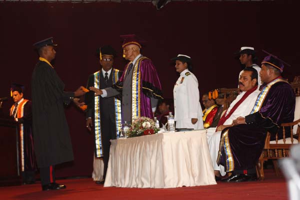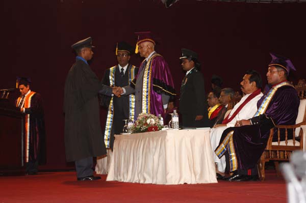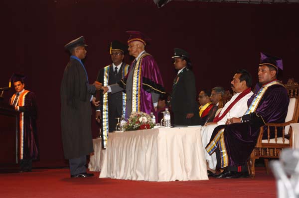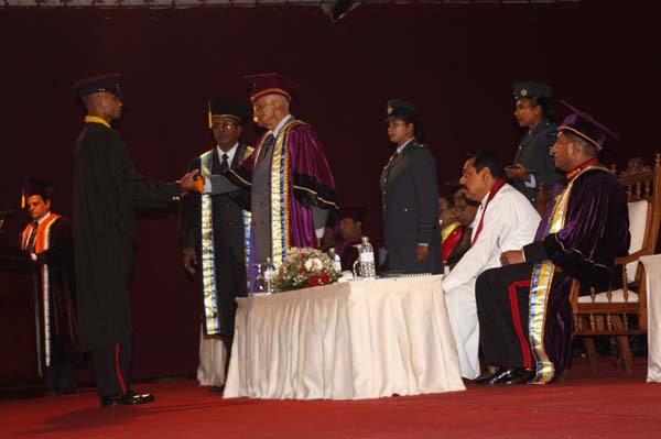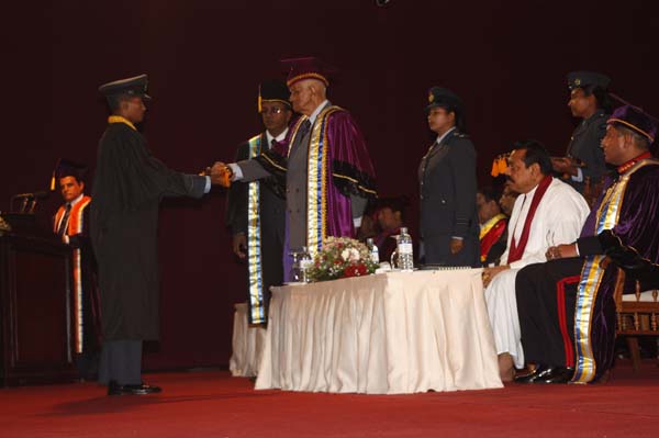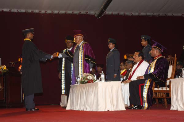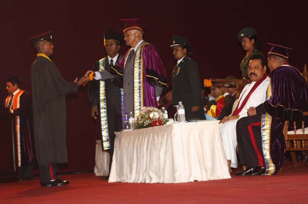 The General Convocation of the 24th intake of Officers of The General Sir John Kotelawala Defence University (KDU) were awarded degrees at the convocation held at BMICH on 28th October 2010. H.E. President Mahinda Rajapakse the Commander in Chief of the Armed Forces was the Chief Guest while the Chancellor of the Kotalawala Defence University Lt.Gen Dennis Perera was also