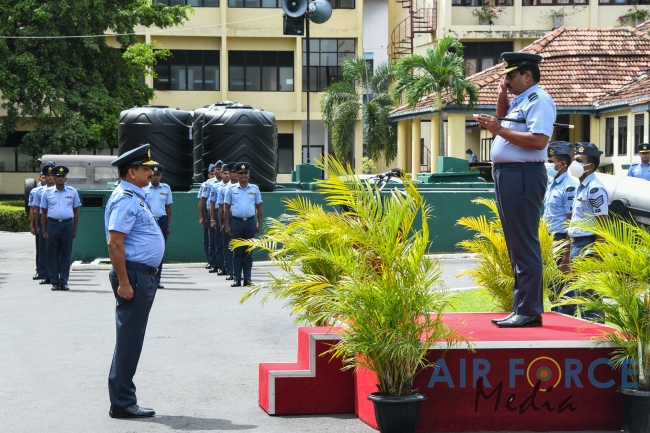The change of command of SLAF Station Colombo, took place today (12 May 2021) at the Station premises. The Handing Over/ Taking Over Parade was conducted at the Station where the Outgoing Commanding Officer, Air Vice Marshal AJ Amerasinghe RSP, USP, MDS, MHRM, MSSD, BSc (Def Stu) in Mgt, ndc, psc handed over command to Air Commodore MDJ Wasage USP, MSc (Def Stu) in Mgt, Pg Dip (IR).
