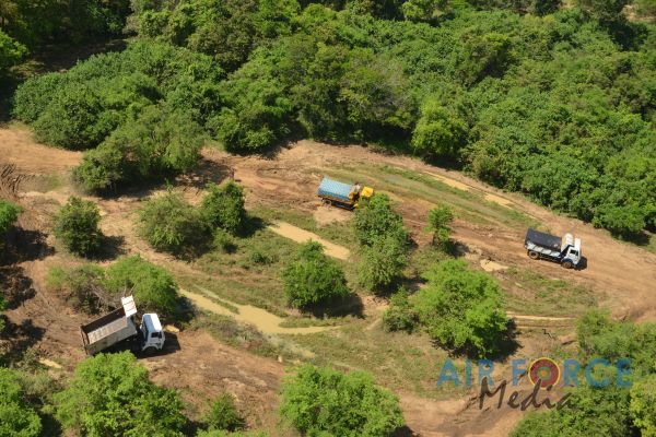 On the instructions of the President, His Excellency Gotabaya Rajapaksa and on the conceptualization by the Commander of the Air Force, Air Marshal Sudarshana Pathirana, a Rapid Deployment Unit made up of SLAF Regiment Special Force (RSF), Police Special Task Force (STF) and Intelligence Operatives raided several illegal sand mining operations which were carried out near the Sittar Bridge in Mutur today (18 May 2021). This joint operation was launch by the SLAF and the Special Task Force (STF) today based on intelligence information obtained through SLAF Intelligence operatives and by further surveillance missioned carried out by Beach King B-200 from the No 03 Maritime Squadron.