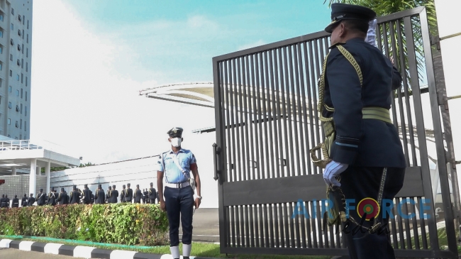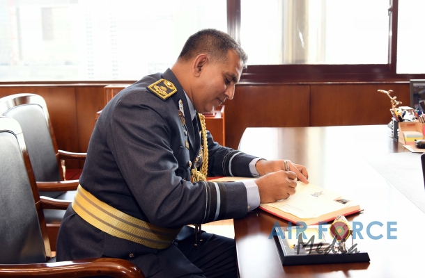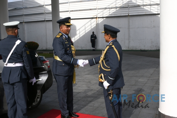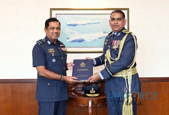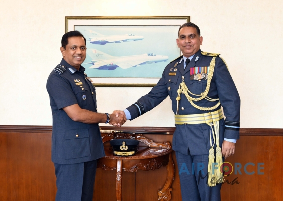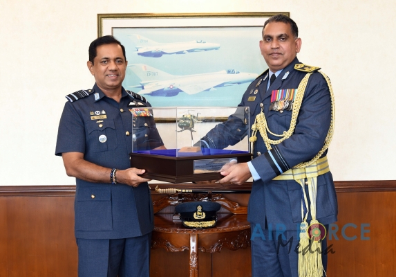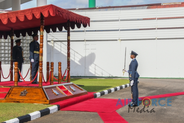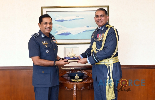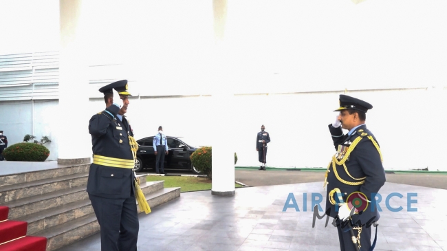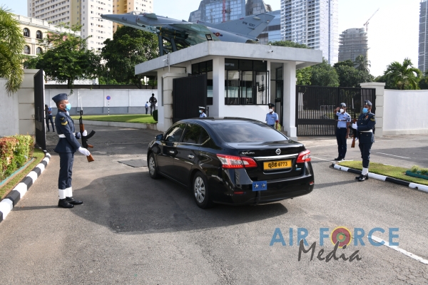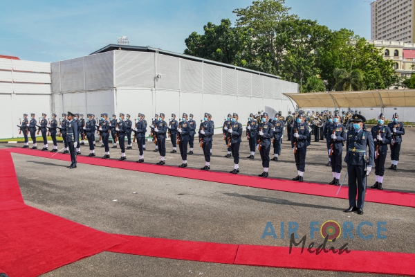 Air Vice Marshal Rodrigo made an official farewell call on the Commander of the Air Force, Air Marshal Sudarshana Pathirana at his office. The Commander commended Air Vice Marshal Rodrigo for the dedicated and distinguished long years of service rendered to the Nation and to the Sri Lanka Air Force in particular and wished him all success for all future endeavors. The Commander and Air Vice Marshal Rodrigo also exchanged mementos to mark the occasion. After which, the outgoing Deputy Chief of Staff was accorded a Ceremonial Guard of Honour by the SLAF Colour Wing and then departed Air Force Headquarters for the very last time.