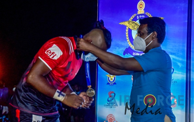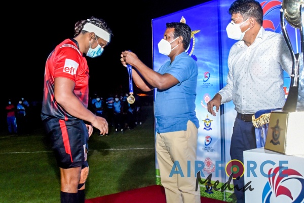 Soon after the completion of the match, the awards ceremony was held where members of the Runners-Up Air Force Team were presented with Silver Medals by Deputy Chief of Staff, Air Vice Marshal Andrew Wijesuriya. Members of the Winning Team for the day, CH & FC were presented with Gold Medals by Hon. Premnath C. Dolawatte, Member of Parliament and Ronny Ibrahim, Co-ordinating Secretary to Minister of Sports.