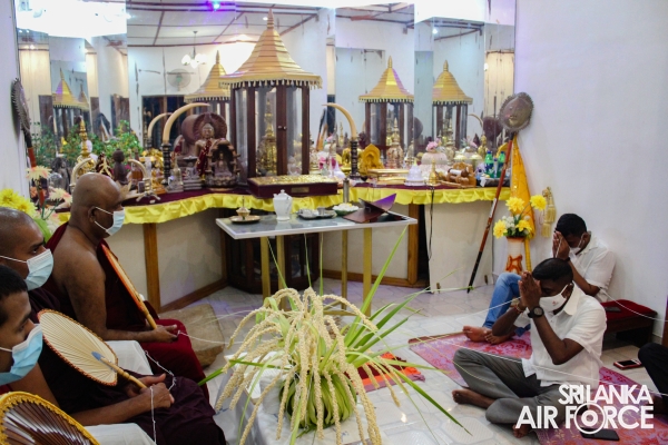 The squadron carried out several Community Service Projects with strict compliance to COVID-19 health guidelines and protocols which included a “Shramadana Campaign” at the “Bosath Childrens” Orphanage at Hingurakgoda and a distribution of dry ration packs among the underprivileged families in area. Further, a ‘Bodi Pooja’ and a “Pirith” chanting programme were also held at Hingurakgoda Buddhist Center commemorating the fallen heroes of the Squadron and also to invoke blessing on present squadron personal and their families.