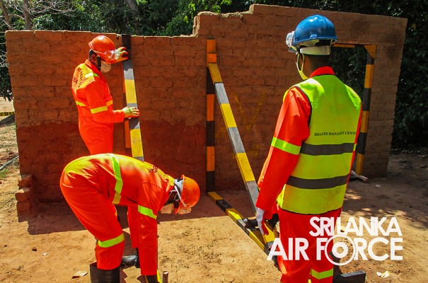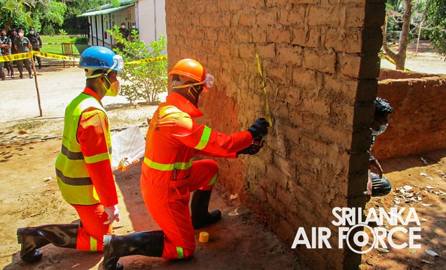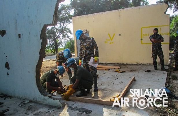 The final practical exercise of the INSARAG Basic Search and Rescue General-Training Course was launched at the newly constructed Exercise Simulation Area located within SLAF Station Mullaitivu. The consolidation exercise consisted of Landslide Rescue and Collapsed Structure Search and Rescue (CSSR) Operational scenarios.