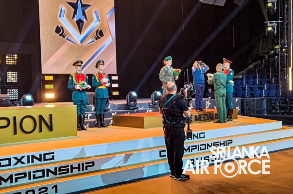 Sri Lankan boxer Leading Aircraftwoman Gayani Kaluarachchi rewrote history when she bagged the Bronze Medal in the Women's 75kg weight category. Her victory marks a historical milestone as it is the first time a Sri Lankan female pugilist has made it to the podium in such a mega boxing event. The Commander of the Air Force, Air Marshal Sudarshana Pathirana extended his heartiest congratulations to the Air Force Boxer who has brought glory and honour to the Sri Lanka Air Force and our motherland, Sri Lanka at an international sporting platform.