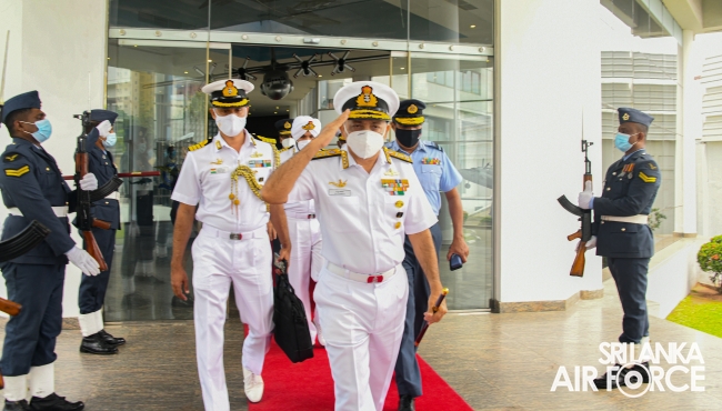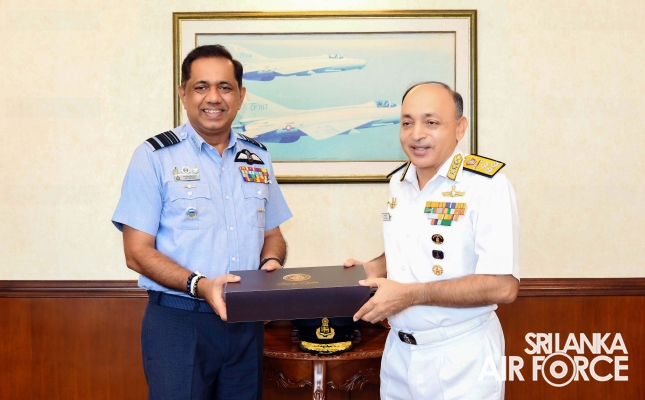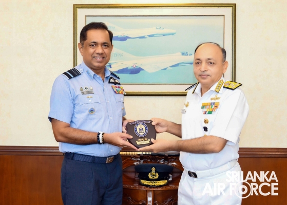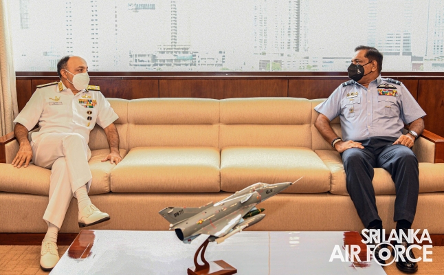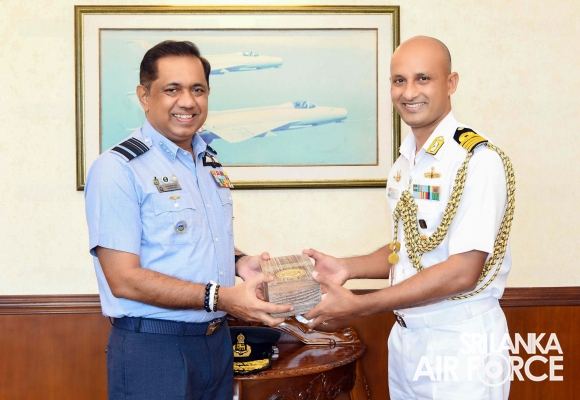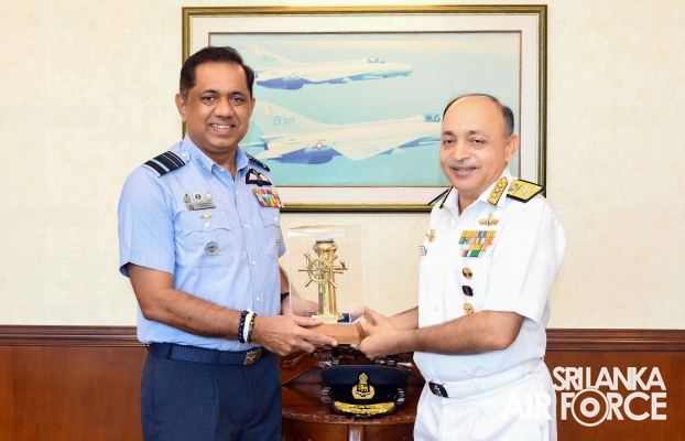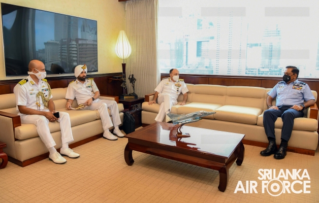 The Flag Officer Commander - In – Chief, Southern Naval Command of the Indian Navy, Vice Admiral Anil Kumar Chawla called on the Commander of the Air Force, Air Marshal Sudarshana Pathirana today (25 October 2021). The Vice Admiral is in Sri Lanka on an official visit along with the training ships of the 1st Training Squadron of the Indian Navy.
