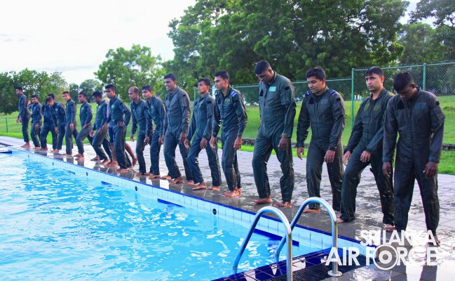 The No.02 Jungle and Water Survival Training course for Aircrew members was held at the Regimental Training Centre of SLAF Station Ampara. This training programme has been designed to give first-hand experience for aircrew members to face any eventualities during an aircraft crash incident. Seven (07) Officers and 10 Others Rankers including an Officer from Pakistan Air Force participated for this 11 day training programme which includes swimming, water crossing, map reading, survival in the jungle, mountain climbing, first aid, night march and crew rescue. The training programme conducted by a group of veteran aircrew members was led by the Commanding Officer of the No 01 Flying Training Wing, Wing Commander KHDP Kasagala who was assisted by aircrew members and Regiment Special Forces troops.