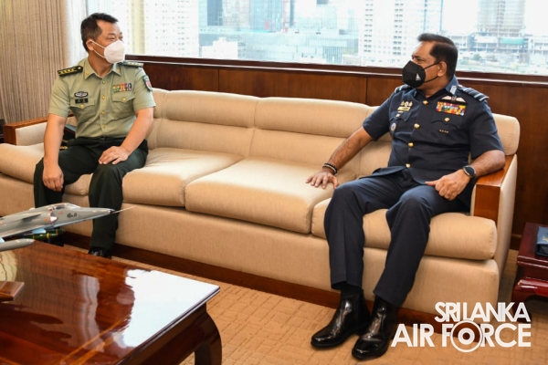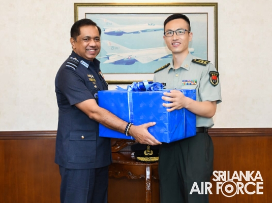 During the cordial discussion that ensued, the Commander conveyed his gratitude to the Outgoing Deputy Defence Attaché, Colonel Chang Qianjin for his cooperation with the Sri Lanka Air Force during his tenure and also made a formal welcome to the newly appointed Deputy Defence Attaché, Colonel Gao Bin.