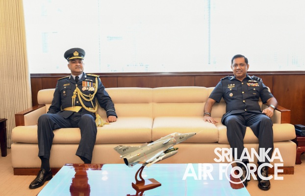 Air Vice Marshal Thuyacontha made an official farewell call on the Commander of the Air Force, Air Marshal Sudarshana Pathirana at his office this morning. The Commander commended him for his dedicated long years of service rendered to the Nation and to the Sri Lanka Air Force in particular. The Commander also emphasized that he was one of the key stakeholders during the time of need of our motherland and that his heroic history will remain etched in the annals of the SLAF. The Commander and the Air Vice Marshal exchanged mementos to mark the occasion. After which, he was accorded a Ceremonial Guard of Honour by the SLAF Colour Wing before he departed Air Force Headquarters for the last time.