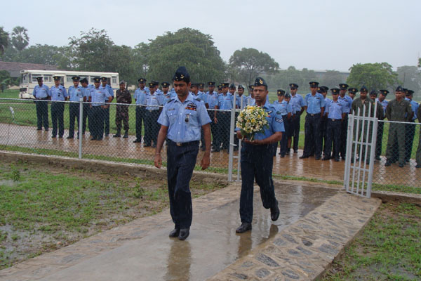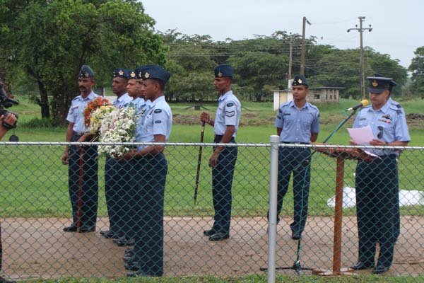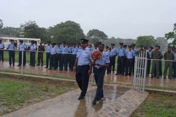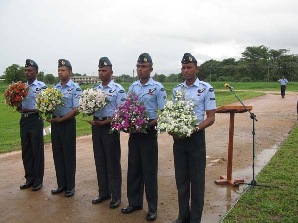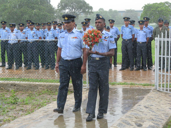 The highlight of the day’s events came at the end, with a tribute at the Mi-24 Monument, containing the names of the Pilots and Air Gunners who sacrificed their lives while serving the Squadron. Paying their respects with floral tributes were the Chief Guest and three former pilots of the Squadron; Wing Commander Anuruddha Bandara, Wing Commander Channa Dissanayake and Squadron Leader Priyamal Fernando. The Warrant Officer in charge of the hangar, W/O Priyadharshana also made a floral tribute at the monument.