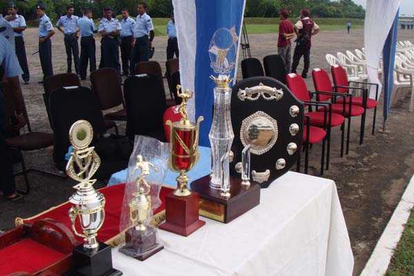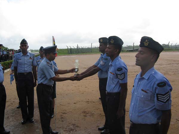 Also receiving awards were the champions of the sports tournament held in lieu of the anniversary celebrations. Winners of the cricket, football and volleyball received their prizes form the Chief Guest after which the Air Force Band display commenced at the parade square.