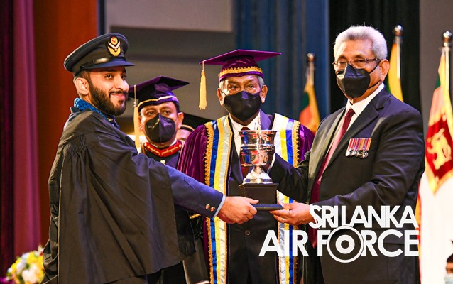 The President presented special awards to Cadet Officer SH Rodrigo as the Best Army Officer, Lieutenant SD Karunasena as the Best Naval Officer, Flying Officer SKS Rukshan as the Best Air Force Officer. The sword of Honour for the Best All-Round Performance of Intake 34 was awarded to Lieutenant LDI Liyanaarachchi.