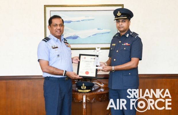On behalf of the Sri Lanka Air Force, the award was received by Group Captain RR Somathilaka, the Command Internal Auditor of the SLAF. Subsequently, the award was presented to the Commander of the Air Force, Air Marshal Sudarshana Pathirana today (30 December 2021) by Group Captain RR Somathilaka at the Commander’s Office.