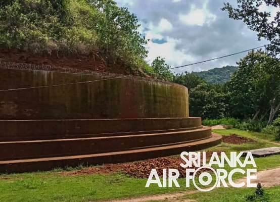 According to the instructions given by Ministry of Defence and under the guidance of Commander of the Air Force Air Marshal Sudarshana Pathirana, Sri Lanka Air Force has taken over the restoration of Nilagiri Maha Seya which is located in Lahugala. Nilagiriya Stupa is Located 108 Km away from SLAF Ampara and 22 Km away from the SLAF Detachment Panama. This is located in the thick jungles of Lahugala National Park and belongs to Magul Maha Viharaya Lahugala. Archaeological Department considers this is as the biggest stupa in the Eastern Province which was built in the 3rd century and the recent renovation works commenced in 2011 after a survey done by Professor Raj Somadeva, University of Sri Jayewardenepura.