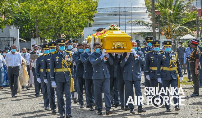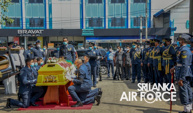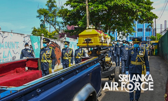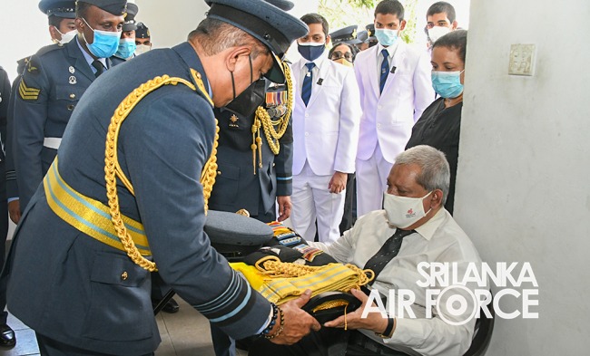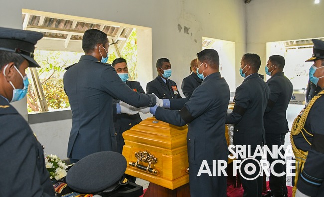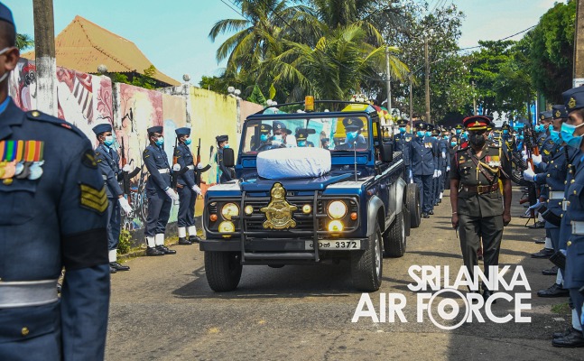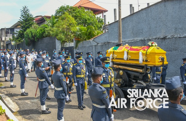 Moreover, the ceremony was attended by Commander of the Air Force, Air Marshal Sudarshana Pathirana, Chief Advisor to the President, Mr. Lalith Weerathunga, Secretary to the Ministry of Defence and Secretary to the State Ministry of National Security and Disaster Management, General Kamal Gunaratne (Retd), Secretary to the Ministry of Public Security, Major General Jagath Alwis (Retd), former Commanders of SLAF, Members of the Air Force Board of Management, Senior Military Officers and State Officials to pay their last respect.