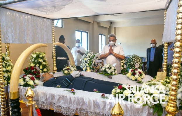 The President of Democratic Socialist Republic of Sri Lanka, His Excellency Gotabaya Rajapaksa paid his last respect to late Air Chief Marshal PH Mendis (Retd) FBIM ,idc, psc, qfi at a private florist in Mount Lavinia today (19 January 2022). He also expressed his deepest sympathies to the relatives of the late Air Chief Marshal.