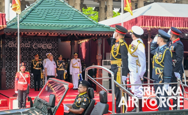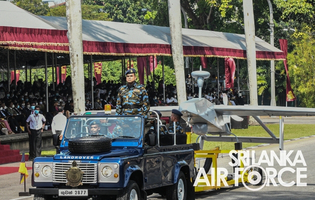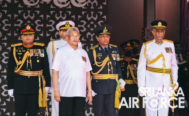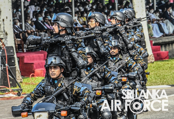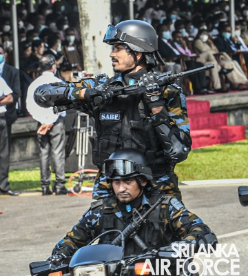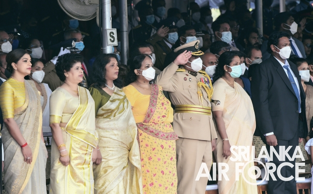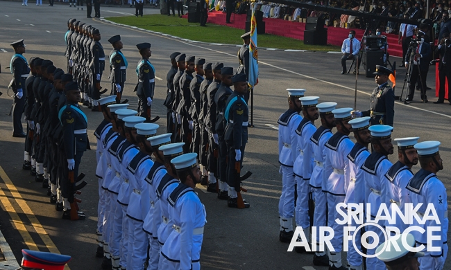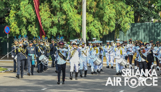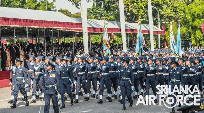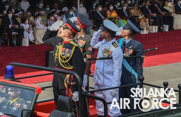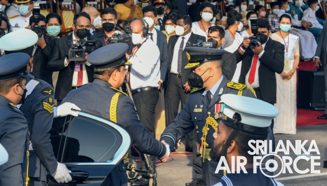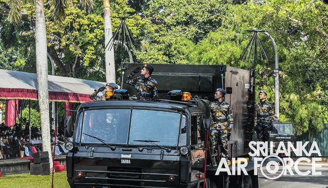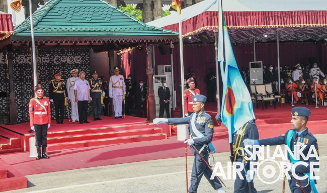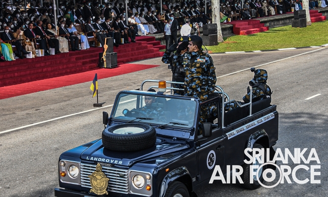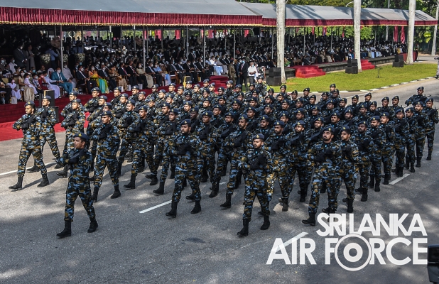 The first squadron was commanded by Squadron Leader Asela Withana, the second by Squadron Leader Prabath Senevirathna and the third squadron which was made up of airwomen was commanded by Squadron Leader Piumi Jayasundara. Next, the Special Air Borne Force Squadron commanded by Wing Commander Niroshan Ritigala and Regiment Special Force Squadron led by Wing Commander Priyadarshana Hettiarachchi presented their salute to the President.