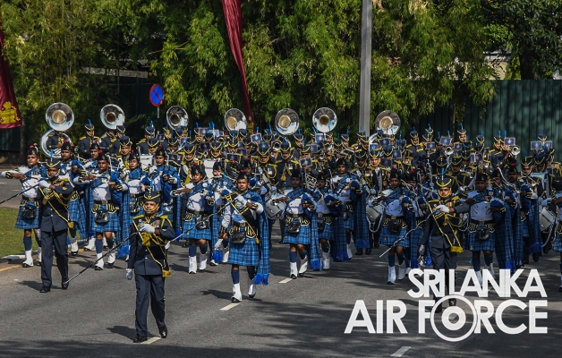Air Commodore Amitha Jayamaha, the Northern Air Commander and Base Commander SLAF Base Anuradhapura represented the Sri Lanka Air Force contingent as Overall Parade Commander. The SLAF parade comprising of five Squadrons was commanded by Wing Commander Jayarathne Amarasinghe while Squadron Leader Gayan Joseph commanded the Tri Services Mass Band.