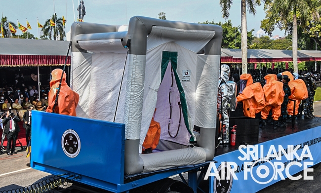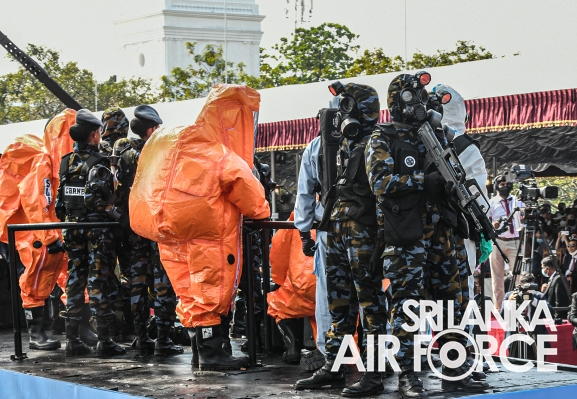 The Chemical, Biological Radiological and Nuclear Explosive (Chemical Biological Radiological Nuclear Explosive) Wing was led by Wing Commander Nilendra Perera, the Commanding Officer of the SLAF Chemical Biological Radiological Nuclear Explosive Wing. The Sri Lanka Air Force Special Airborne Force Rider Squad led by Squadron Leader Nipuna Herath marked the end of the SLAF mechanical column of the 74th National Independence Day celebrations.