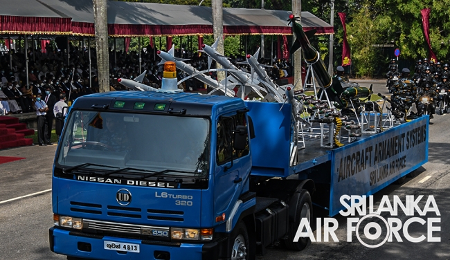 This year’s mechanical column representing the support elements of the SLAF included an Unmanned Aerial Vehicle along with indigenous production of “Lihiniya Mark 2”, Air Defence System, Chemical Biological Radiological Nuclear Explosive Squadron, Armament and Special Airborne Force Rider Squad.