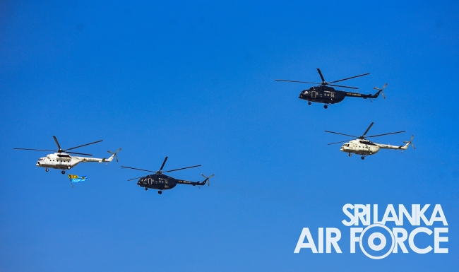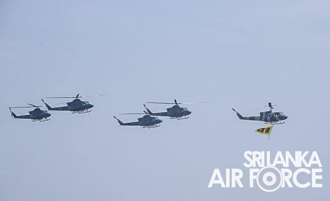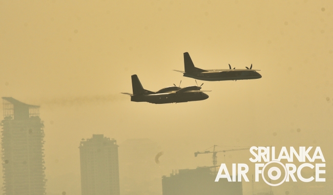 Director Air Operations of SLAF, Air Vice Marshal Kapila Wanigasooriya was the overall coordinator of the Independence Day Fly Past which included a Bell 212 Helicopter, Four (4) Bell 412 Helicopters, four (4) MI-17 Helicopters, three (3) Y-12 Light Transport Aircraft, two (2) B200 Surveillance Aircraft, one (1) MA-60 Passenger Transport Aircraft, two (2) AN-32 Heavy Transport Aircraft , three (3) K-8 Advanced Trainer Aircraft and two (2) F-7 Fighter Jet Aircraft.