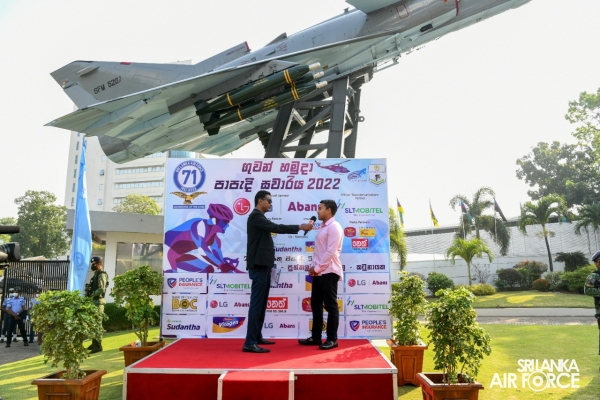 The Guwan Hamuda Papedi Sawariya 2022, the 23rd edition of the race was flagged off by the Minister of Youth & Sports, Minister of Development Co-ordination and Monitoring and State Minister of Digital Technology and Enterprise Development, Hon. Namal Rajapaksa on the invitation by Commander of the Air Force, Air Marshal Sudarshana Pathirana this morning (4 March 2022) in front of Air Force Headquarters. This year’s race which commenced today is conducted in line with the 71st anniversary.