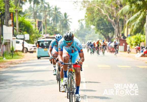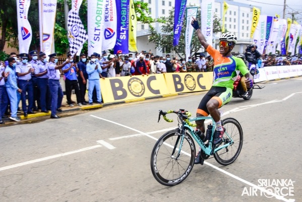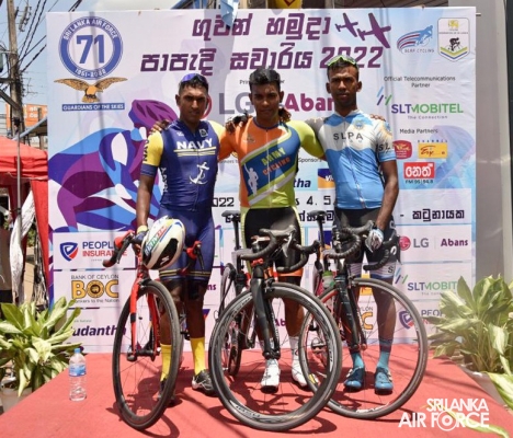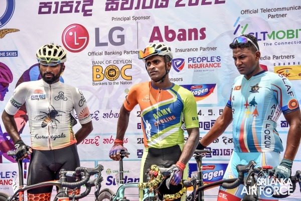 The First leg of the 23rd Guwan Hamuda Papedi Sawariya ended at Puttalam yesterday (4 March 2022) having covered a distance of 138km. Sri Lanka Army Cyclist Sandaruwan Pinto won the 1st leg of the race while Sandun Kumara from Fun Bee Racing Cycling Club and Ashen Tharuka of Sri Lanka Air Force finished as second and third places respectively.