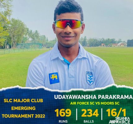After being shot out for 150 in the first innings Moors SC recovered to score 339-8 before declaring their second innings leaving Air Force to chase 172 off 47 overs. The Air Force Sports Club took up challenge and reached the target with 2.5 overs to spare scoring 174-5. Opener Kemira Wijenayake played the winning role scoring 82 off 140 balls to see the Airmen home. The team captain Udayawansha Parakrama made a stunning job scoring 169 to head on the Air Force Sports Club to the victory.