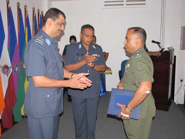 A total of 19 Officers from the Air Force in the rank of Squadron Leader and Flight Lieutenant, 4 Officers from the Army in the rank of Major and 4 Officers from the Navy in the rank of Lieutenant followed and graduated from this course successfully. The Junior Command and Staff College is accredited to the University of Kelaniya and all Officers who fulfill the required criteria will be awarded with a PG Diploma in Defence management.