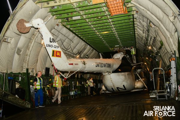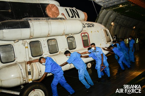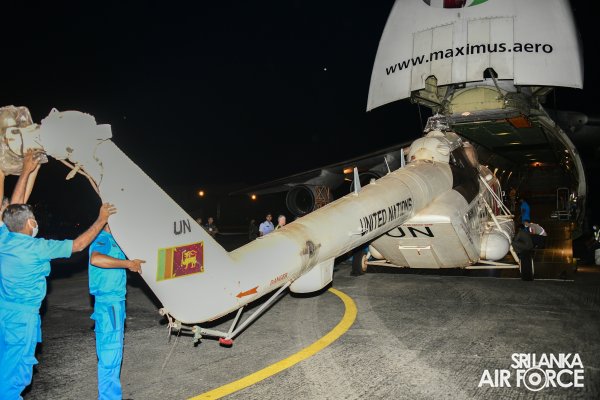 The rotation was successfully completed from 29 March to 02 April 2022 through UN provided AN-124 aircraft in which two MI-17 helicopters dispatched to SLAF Aviation Contingent in Central African Republic (MINUSCA) and three MI-17 helicopters returned to Sri Lanka after completion of its operational tenure.