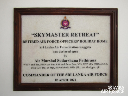 The newly constructed ‘SKYMASTER RETREAT’ Retired Officers’ Holiday Home at SLAF Station Koggala was declared open by the Commander of the Air Force, Air Marshal Sudarshana Pathirana on virtual platform today (03 April 2022).