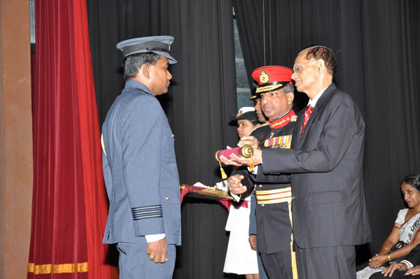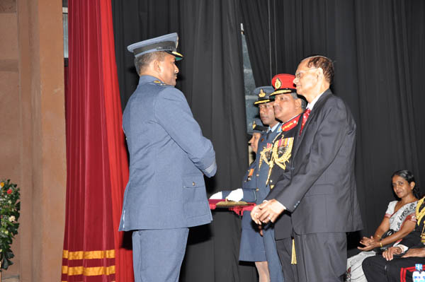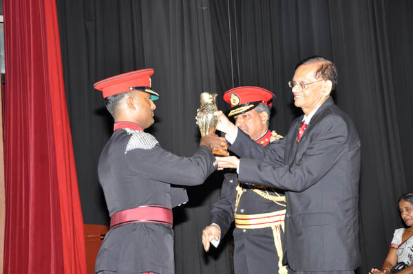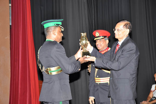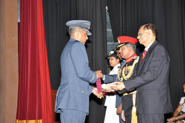 The prestigious Golden Owl Award was jointly awarded to 5 grandaunts from the tri forces; 2 Army, 2 Navy and 1 Air Force Officers. Wing Commander Chaminda Wickramaratna of SLAF was awarded the Commandant’s Golden Pen. This award is presented to the best original research paper containing proper documentation that is submitted to the board of examiners. The criterion is based on originality, style and overall value to the military profession of the chosen topic of study.