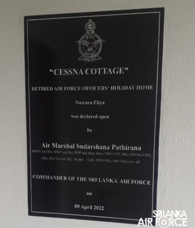 According to a concept of Commander of the Air Force, Air Marshal Sudarshana Pathirana, in view of felicitating Retired Air Force Officers by providing leisure and re-creational facilities to appreciate their utmost service to Nation, newly constructed “CESSNA COTTAGE” Retired Officers‘ Holiday Home at Nuwara Eliya was virtually declared open by the Commander yesterday (09 April 2022).