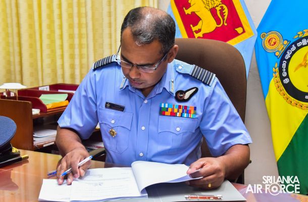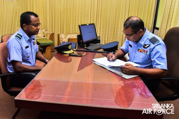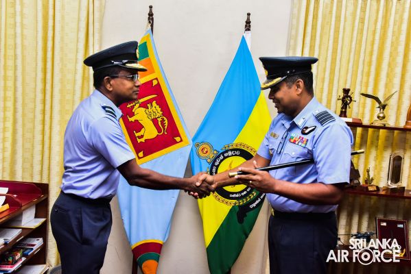 The Change of Command at the Junior Command and Staff College, SLAF Academy China Bay held yesterday (04 May 2022) where the outgoing Commanding Officer, Air Commodore PLLCS Alwis RSP and Bar, USP, MDS, BSc (Def Stu) in Mgt, psc handed over the command to Group Captain DMSB Dassanayake BSc (Def Stu) MTS, psc.