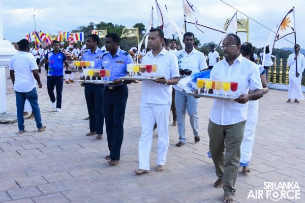 SLAF made their utmost contribution for Alms Giving, ‘Gilanpasa’ Pooja, Vesak Bethi Gee and Veask lanterns demonstration under the directions by Commander of the Air Force, Air Marshal Sudarshana Pathirana and the supervision by Director Welfare, Air Vice Marshal Hemantha Soyza adding more colours to the solemn event.